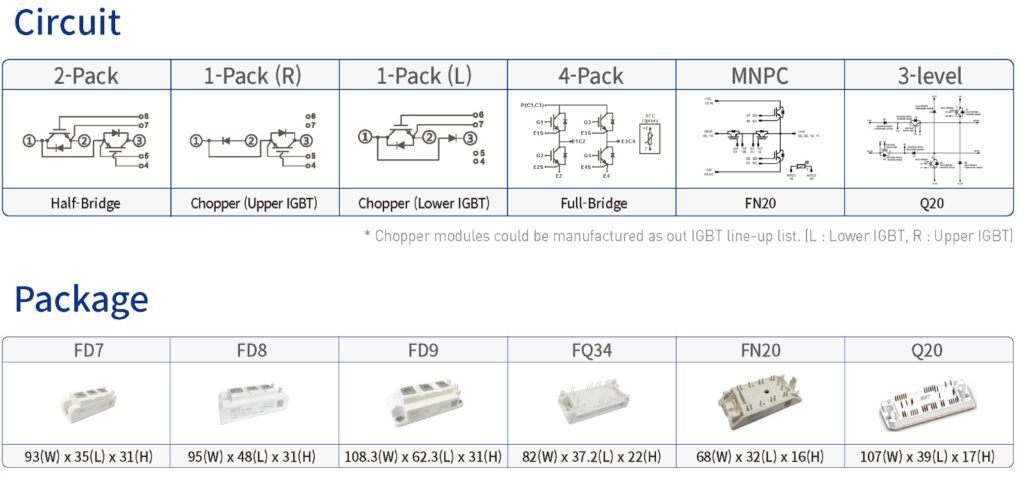 | Package | Part No | VCES [V] | IC [A] @ 80°C | VCE(sat) [V] @ 25°C | tr [ns] @ 25°C | Circuit |